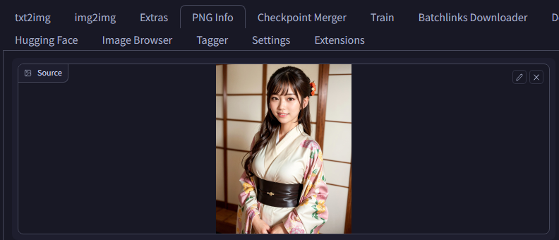 Stable Diffusionの機能で、インストールすると「PNG Info」というタブがでます。